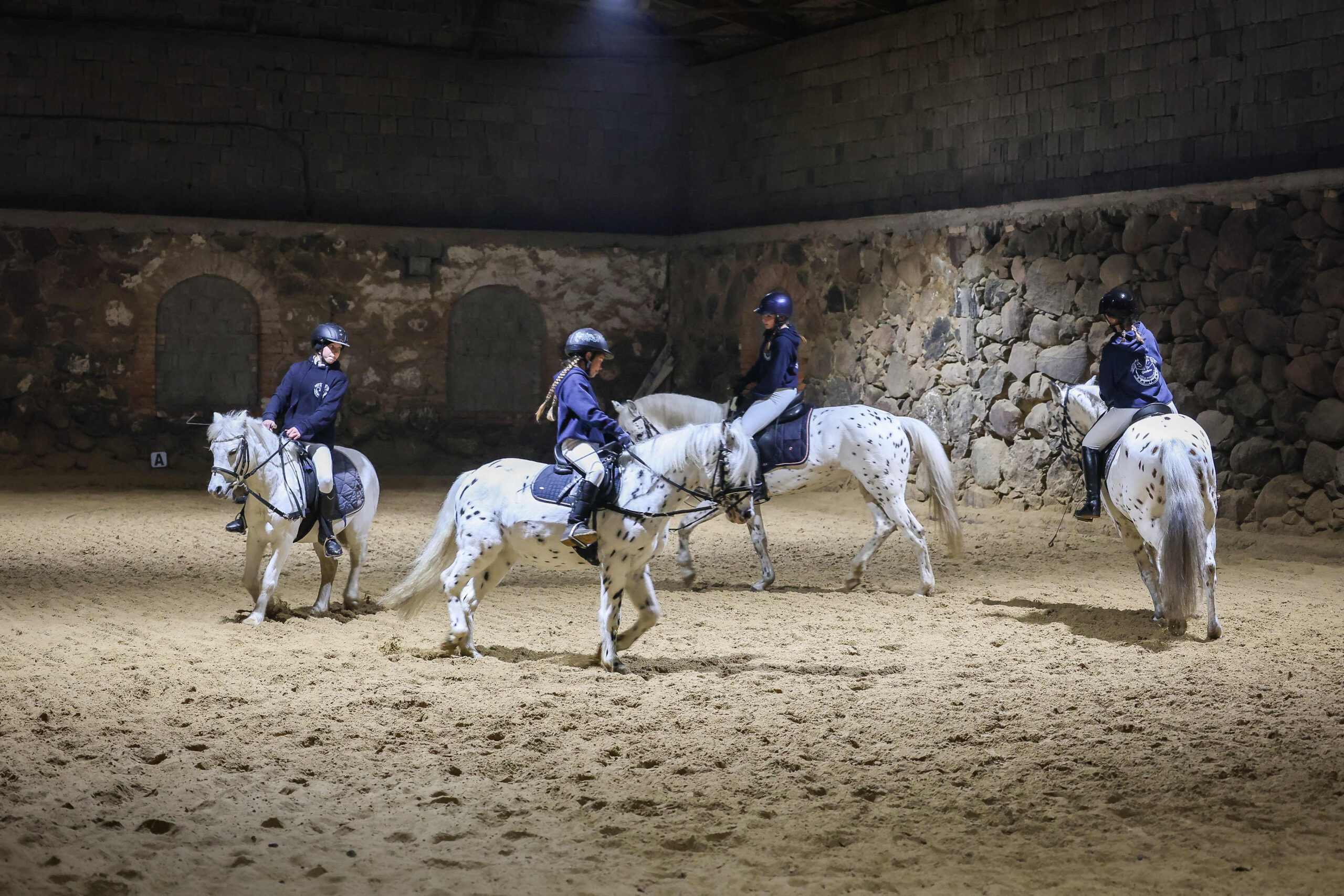 Gemeinsam mit ihrem Mann hat Nadine den Verein aufgebaut. Sechs Schulponys und -pferde sowie 10 Einstellpferde sind auf dem gepachteten Gelände untergebracht. Rund 80 Kinder und Jugendliche verbringen ihre Freizeit auf dem Hof. Sie lernen den Umgang mit den Tieren und das Verständnis für den „Partner Pferd“. Die Kleinsten werden dabei spielerisch ans Pony geführt, Voltigieren und Gleichgewichtsübungen stehen hier im Fokus. Ab fünf oder sechs Jahren dürfen die kleinen Reiterinnen und Reiter dann in den Sattel und nehmen am Reitunterricht teil. Wer mag, spezialisiert sich in Dressur, Springen oder in der Vielseitigkeit im Gelände. „Ich begleite die Jugendlichen auch auf Turniere. Aktuell bis zur Klasse A, wir werden sehen, wie weit wir kommen!“, erklärt Nadine Finkl mit einem Augenzwinkern. Sogar Erwachsene nehmen am Reitunterricht teil: Neu- bzw. Wiedereinsteiger, deren Lebenssituation gerade wieder Zeit für Pferde lässt. „Das Pferdesporthobby prägt Kinder und Jugendliche in eine Richtung, die gerne weitergebe: Verantwortung für ein Lebewesen zu übernehmen, Vertrauen aufbauen, Sicherheit und Selbst-Bewusstsein für sich und seinen Körper erfahren und nicht zuletzt eine Gemeinschaft zu leben, das sind Werte, ich gerne weitergebe!“, so Trainerin Nadine Finkl.